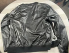 This Guess Los Angeles men's jacket is a size large with a bomber style, featuring a nylon arms/back and cotton blend body in a black/gray color. The jacket has a solid pattern, zip closure, and retro theme, making it suitable for various occasions like travel, parties, or casual wear. It has a regular fit, full zip, and pockets, ideal for both winter and transitional seasons. The machine-washable jacket is not vintage and bears the Guess brand logo, making it a stylish and versatile addition to any wardrobe.