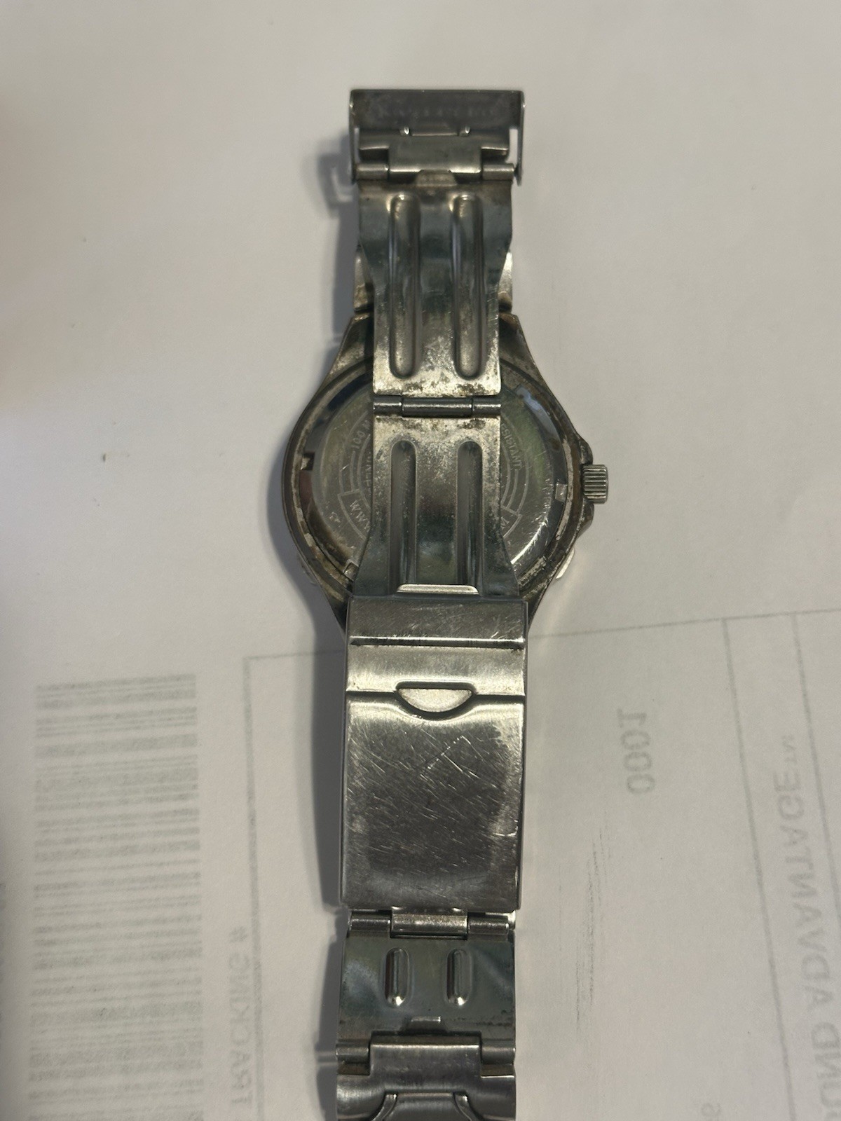 This vintage Guess WaterPro watch is a fantastic find—sleek, durable, and running perfectly with its new battery. The stainless steel build feels premium, and the 100m water resistance makes it great for daily wear or light swimming. The sapphire crystal keeps it scratch-free, while the day indicator adds convenience. It’s a stylish throwback that still performs like new. Highly recommend for anyone who loves classic, rugged yet refined watches!
