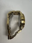 This vintage Guess wristwatch is a stunning addition to any collection. With a gold bezel color and a white dial color, this watch is perfect for any casual or classic occasion. The watch features Arabic numerals and a two-piece strap made of stainless steel, making it both durable and stylish. Water-resistant up to 100 meters, this Swiss-made watch comes with a chronograph feature and is powered by a quartz movement. The watch is in great working condition and is sure to impress. It includes the original packaging and papers, and is a must-have for any watch enthusiast.