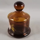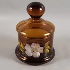 Vintage HAND PAINTED White Pink Flower BLOWN Amber Glass APOTHECARY JAR • Includes jar with matching lid, as shown in photos • Blown in mold • Amber glass • Hand painted pink & white flower • Unmarked, Unsigned ** eBay required a "Year of Manufacture" be listed within the Item Specifics section. 1980 is an estimate, the actual age is unknown ** MEASUREMENTS ** • Total weight of all items: 7 oz • 3¾" diameter • 2½" tall • 5" tall (including lid) ** CONDITION DETAILS ** • EXCELLENT, previously owned condition • Minor age-related wear • No chips, cracks, crazing, or other damage noted • See photos for additional condition details ** PHOTOS ** • Photos provide a visual inspection of the item(s) prior to purchase & are considered a part of the item(s) description. • Please VIEW ALL PHOTOS carefully prior to bidding, submitting an offer, or purchase. • Our items sold are typically vintage or antique & previously owned & used. • Normal use & age related wear is expected. • We do our absolute best to depict the condition of the item(s) in both of the "Item Details" section, as well as in the photos. • We are happy to provide additional photos & answer any questions if needed! • Feel free to make an offer! No price is set in stone! Thank you for taking the time to view our item! - Pieces of the Past KC Who we are… A small, family run business located in the heart of the Midwest! We offer a variety of pre-owned vintage & antique items such as CERAMICS, PORCELAIN, ART GLASS, JEWELRY, and EPHEMERA acquired from local estate sales, auctions, & antique stores. We want to provide you with the best service possible! If there is ANY issue with the item delivered, please contact us prior to filing a return or leaving feedback. We would greatly appreciate the opportunity to assist you & provide a resolution! ** SHIPPING ** • Items are carefully packaged & shipped within 1 business day of payment made - Items are normally shipped via USPS - Feel free to request an alternative service & we're happy to accommodate in any way possible! - We do NOT charge for the cost of shipping supplies, as this is OUR cost to do business • Shipping prices are quoted by eBay through the USPS site - Calculated shipping is based upon your location & the package measurements - We obtain accurate measurements of each package to ensure prices are calculated correctly • PLEASE REVIEW & CONFIRM your billing information & shipping address prior to completing the purchase - Buyer is responsible to provide accurate billing & shipping information • CANCELLATION of purchase after payment has been processed will be refunded minus any fees incurred by the seller that eBay will not refund ** INTERNATIONAL BUYERS ** Please Note the Following: • Import duties, taxes & charges are NOT included in the item price or shipping charges • These charges are NOT within the control of the seller & are the buyer's responsibility • Please check with YOUR country's customs office to determine what these additional costs will be prior to bidding/buying - These charges are normally collected by the delivering freight (shipping) company, or when you pick the item up • We DO NOT mark merchandise values below value or mark items as 'gifts', as US and International government regulations prohibit such behavior • Please allow at least 1-2 weeks, or more for delivery - Customs clearance times vary widely • Insurance is included as per eBay's International Shipping Policy