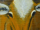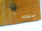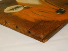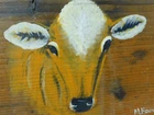 Fresh from a local Lancaster Co, PA Old Order horse & buggy Mennonite farm Handmade, hand painted wooden barn board--ready to hang Darling young cow/calf handpainted on front along with Mennonite artist's mark--M. Hoover Approx 9.5" x 12.5" with wire for hanging In excellent vintage condition---light soiling Track Page Views With Auctiva's Counter