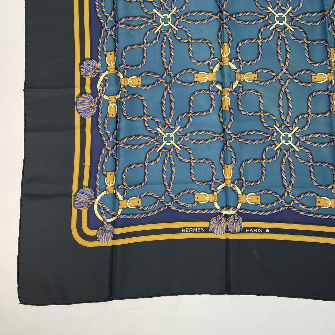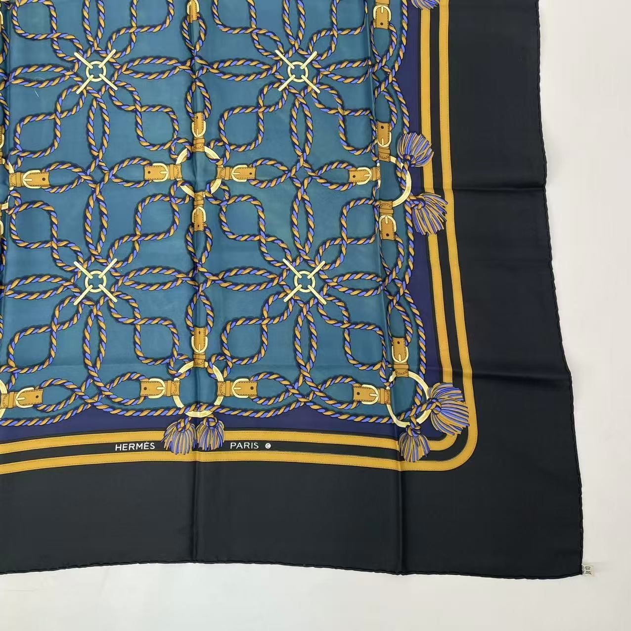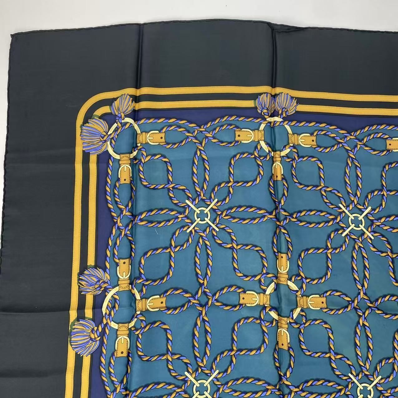 Absolutely stunning Hermès scarf! The "Eperon d'or" design is elegant and timeless, and the navy silk adds a luxurious touch. Perfect as a scarf or a stylish rope belt—so versatile! The quality is impeccable, and even though it's pre-owned, it's in great condition. Love that it comes from Japan with the authenticity tag still attached. A must-have for any Hermès lover!