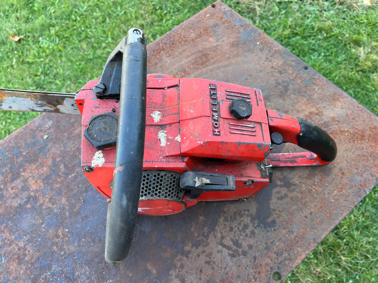 Just found at a local estate sale...a very interesting old chainsaw. This is a HOMELITE XL-75 chain saw with 16" bar. I pulled on the cord and it has compression. Good for parts or to restore. I don't know much about chainsaw...so please have a look at the photos.