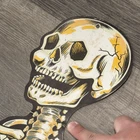 Suitable For:Door, WallOccasion:HalloweenItem Height:54inCharacter:SkeletonSize:LargeBrand:BeistleItem Length:54"Pattern:VintageColor:WhiteType:Diecut DecorationSubject:SkeletonFeatures:Glow in the DarkOriginal/Reproduction:OriginalMaterial:Cardboard