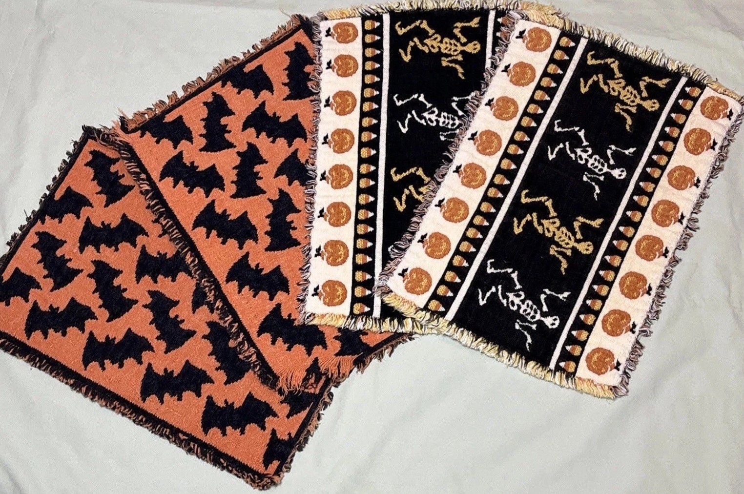 Comes As Pictured Double Sided placemats , Colors Are Reversed On Each Side - One Of The Bat Placemats Is Torn On Bottom Right Corner As Pictured - Lot of 4 “16 x 11 inches Great Condition Amy Questions Message Me
