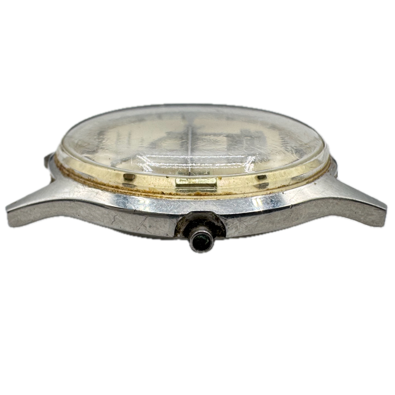 Vintage Hamilton Sunburst Date Armco Men's Electronic Wristwatch Swiss Steel Product Description Item: Wristwatch Brand: Hamilton Model: Sunburst Date Armco Movement: Electronic Case Material: Steel Country: Swiss Gender: Men's Size: 34.5mm Product Measurements Diameter: 34.5mm Width: TRUEmm Lug Width: 17.5mm Lug to Lug: 40mm Thickness: 10 mm Product Condition Overall Condition: Fair, overall condition for its age. Functions: Not running but the balance complete is in good condition. Case: There are scratches on the case. Crystal: There are scratches on the crystal. Dial: The dial has spotting. Crown: It is missing the stem. Hands: There is discoloration on the hands. About the brand: Producing their first pocket watches in Lancaster, PA as early as 1892, Hamilton watches are one of the most recognizable American watch brands. While they moved production of their watches to Switzerland in 1969, the American catalog of Hamilton watches is impressive. Recognizable models such as the Ventura, worn by Elvis Presley, and their WW2 military issue “Khaki” watches, Hamilton still enjoys a large presence in the market today. Offering both well made modern pieces and a backlog of wonderful vintage items - Hamilton offers much for the vintage and modern collector.