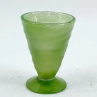 Vintage Hand Blown Swirl Art Glass Footed 4 Sherbet Tumbler Cup Green 2 1/4" diameter at top rim and 3 1/8" tall. Visible rough pontil on base.