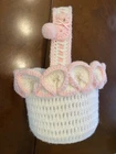 This Vintage Hand CROCHETED Stitched Easter Basket Granny Chic Cottage Pink White is a perfect addition to any room Very granny core Original vintage sweetie Please see all photos Smoke Free Home Happy to combine for shipping savings