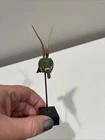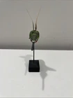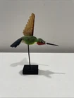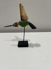This vintage figurine is a unique addition to any collection. Handmade in the Philippines, it features a beautifully carved green, red and black hummingbird with wood base. The intricate details of the bird's feathers and body are impressive, making it a true work of art. The figurine is mounted and ready to display, adding a touch of elegance to any room. Made from high-quality wood, it is durable and will last for years to come. This piece is perfect for bird lovers or collectors of unique and handcrafted items.