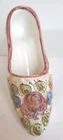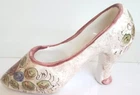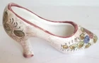 This vintage handcrafted porcelain shoe from Deruta, made in 1985, is a beautiful piece for any collector or lover of floral-themed decor. The shoe features a stunning hand-painted design of burgundy roses and blue-green leaves on a glossy finish, making it a perfect decorative item for any room and occasion. Measuring 5 inches in length, 3.25 inches in height, and 1.75 inches in width, this figurine is a medium-sized item that's great for display. It's signed by the artist and branded as Deruta, ensuring its authenticity as an original piece from the 1980s. This collectible comes in a pack of one and is a must-have for anyone who appreciates the beauty of handcrafted porcelain.