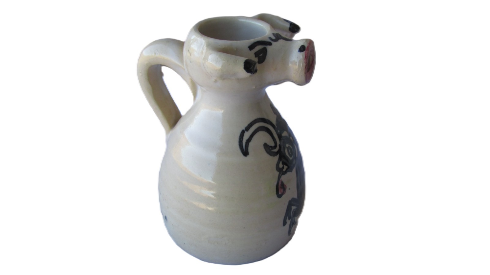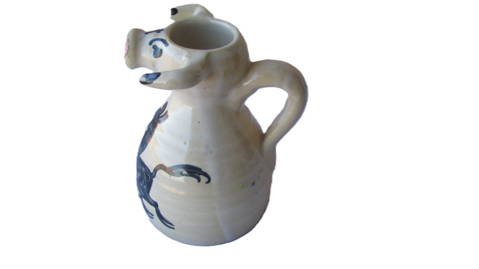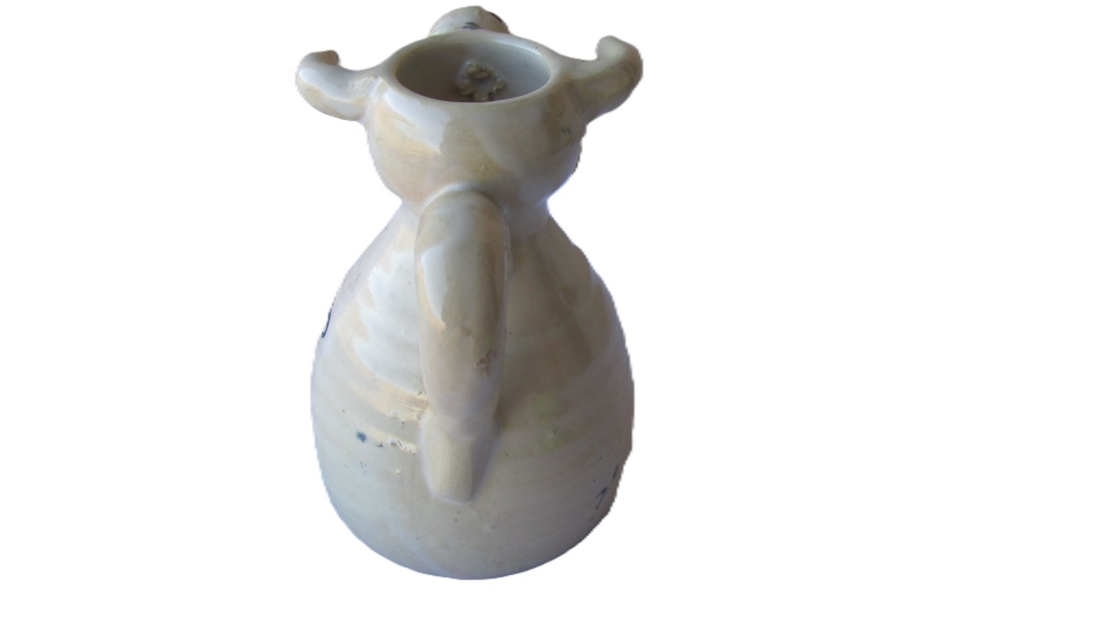 Vintage Hand Painted 4” Creamer Pitcher Bull Shape Art Pottery fair signed condition sowing very slightly wear in keeping its age. see pictures for details
