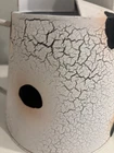 Vintage whimsical black and white cow watering can with crackled paint finish. It measures approximately 101/2” at its tallest point, 14” from spout to handle and 7 3/4” across its base. The brownish shading is intentional and not a defect.