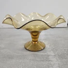 Vintage Mid-Century Florentine Glass Fruit Bowl Amber Ruffle Hand Made Italy 9"D. Condition is Used. Shipped with USPS Ground Advantage.