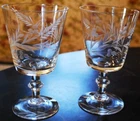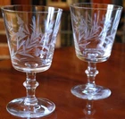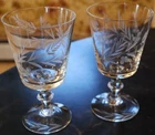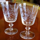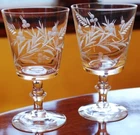 Vintage Set 2 WATER GOBLET GLASSES Hand Blown ETCHED PLANTS BOWL & FOOT 5.75" high x 3 3/8" across tops, foot is 2 5/8" diameter * Please check my Store under Vintage Glassware for the matching set of Liquor Cocktail Glasses [a set of 4] * Excellent condition, pristine- both glasses are absolutely without damage, no scratches nicks chips fleabite dings or signs of wear, sparkling clean. Gorgeous lush hand etched grasses and berries. Unusual wafer stem. See all pics and use zoom. Very collectible. Extremely well made to last a lifetime. Weighty. Circa 1930s Ships fully insured & w tracking provided *Please check my Store under Vintage Glassware for many more stemware sets of all ages and styles, I am listing my large collection* As always, my items are meticulously packed with EXTRA bubble wrap and extreme care to insure a safe arrival. Please check my Ebay Store for MANY other listings of FABULOUS VINTAGE Collectibles, Glass, China, Tea sets and Cups, Art, Vintage Jewelry, Clothing and Hats, and VERY unique treasures. I add several new listings per week. Please note the following, dear fellow shopping enthusiasts: I strive to give you the VERY best service possible. I am not a dealer or professional, just a lifelong collector and lover of all things Vintage. I represent my items as accurately and clearly as I can, and believe it is always better for you to have too much information than not enough. Please ask ANY questions before purchasing, I will happily respond. I will promptly mail your item within 1 business day and post GREAT positive feedback for you as soon as payment is received. Remember, these are vintage items and will have reasonable signs of age and wear which only adds to their personality, appeal and "funky vintage-ness". They are not in their original boxes unless noted. I do not excessively clean items or remove age patina, as I want to leave that option for the buyer. Go Green! I try to re-use clean, almost-new shipping boxes when possible. I will gladly combine shipping on multiple items for you. Thank you for looking !