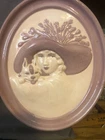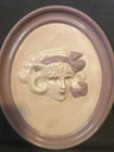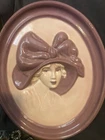 This vintage ceramic wall art piece from Duncan Ceramic features a beautiful woman with a big bow hat and a cameo. The hand-painted details add a unique touch to this medium-sized piece, which measures 11.5 inches in length and 10 inches in width. The glossy finish and Victorian style make it perfect for any room, whether it's the bathroom or bedroom. The Lady with Big Bow Hat cameo was manufactured in 1975 in the United States and is part of a set of three. It's a perfect collectible for any occasion and will make a great addition to any decorative collection. This One Piece character family piece is handmade and will be a great addition to your home.