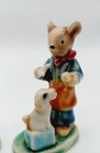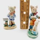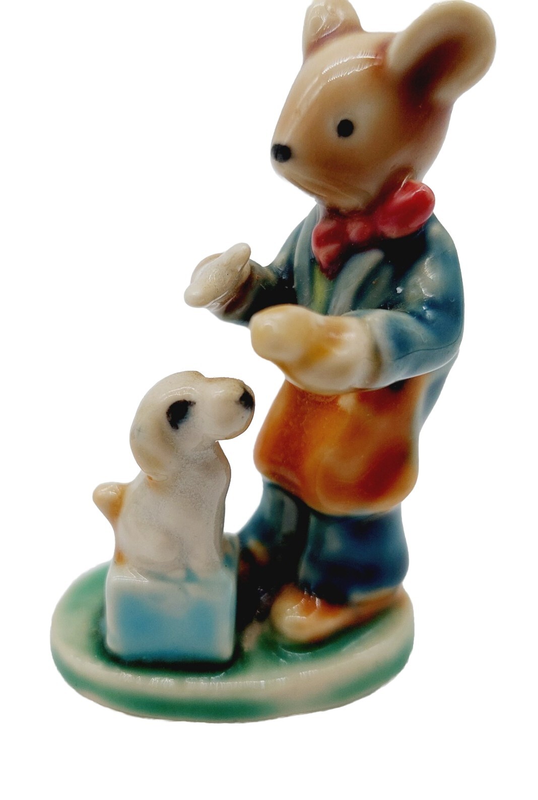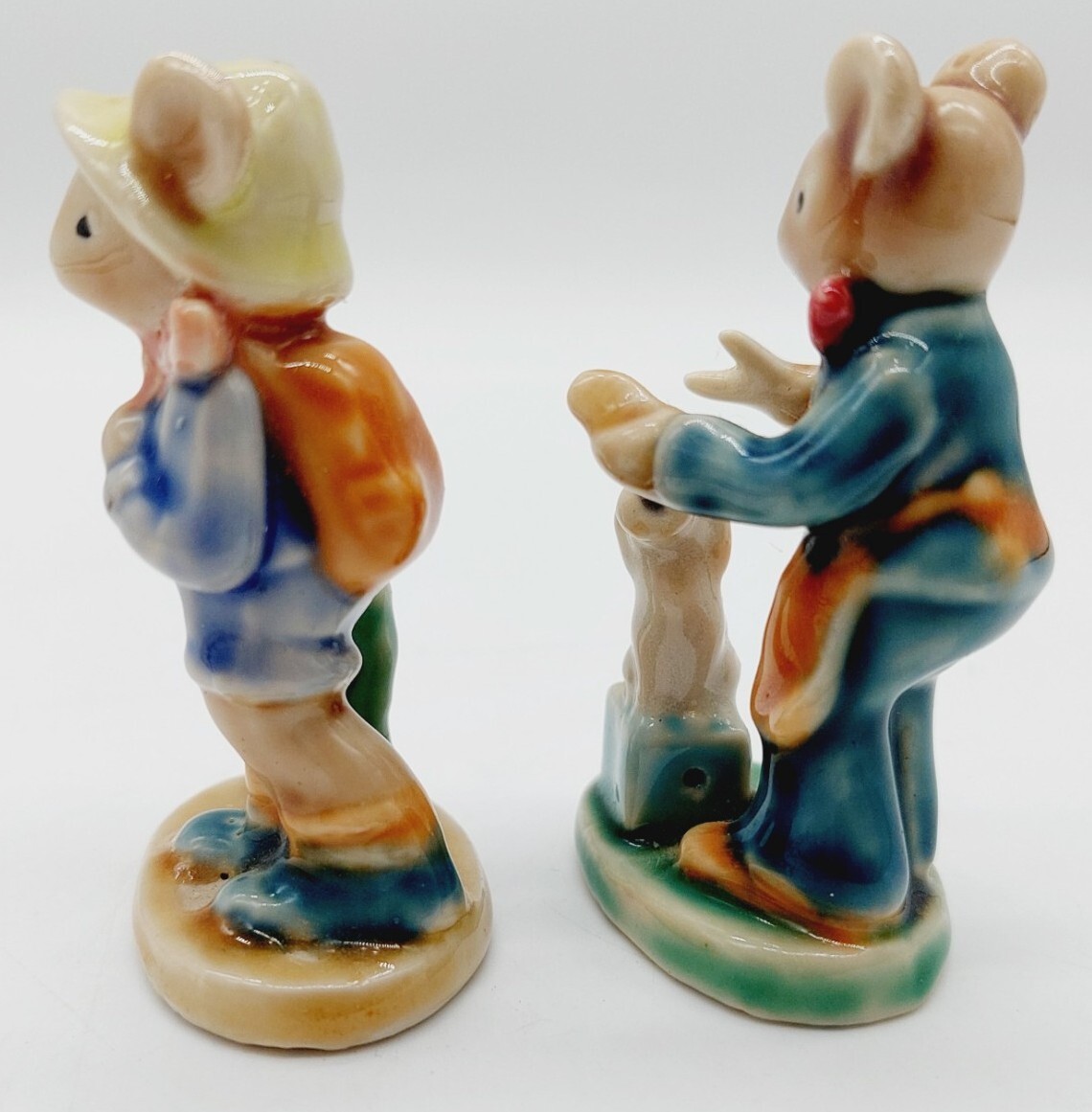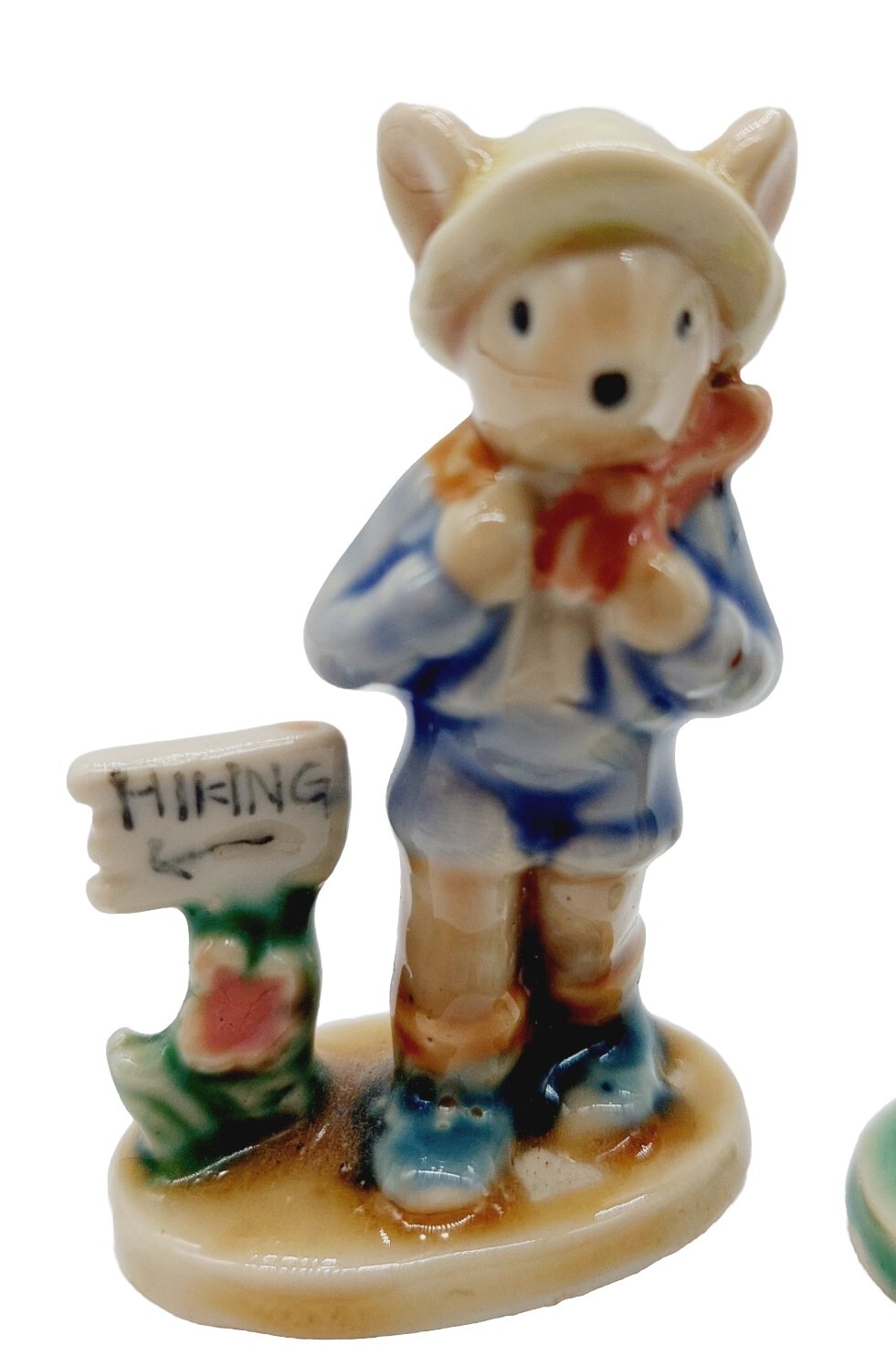 Vintage Hand Painted Porcelain Mouse Hiking & Mouse With Dog Figurines 3" Set