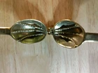 This vintage handcrafted solid brass walnut cracker with internal grab kitchen tool is a unique addition to any collection. The piece has a rich history, originating from India and dating back to the early 1900s. The light brass tone of the cracker adds to its charm and makes it a standout piece in any display. The nutcracker is an original piece and is perfect for collectors of unique metalware. Its age and authenticity make it a valuable addition to any collection. This piece is sure to be a conversation starter and a prized possession for years to come.
