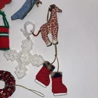 Brand:HandmadeSet Includes:OrnamentMaterial:Cloth, Sequin, yarnTheme:ChristmasOccasion:ChristmasType:OrnamentCollection:OrnamentsSeller Notes:“Light wear from use and age.”
