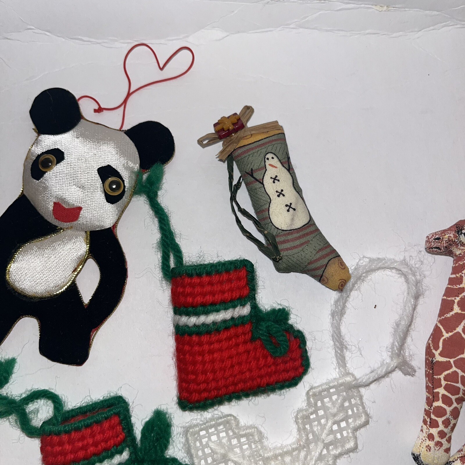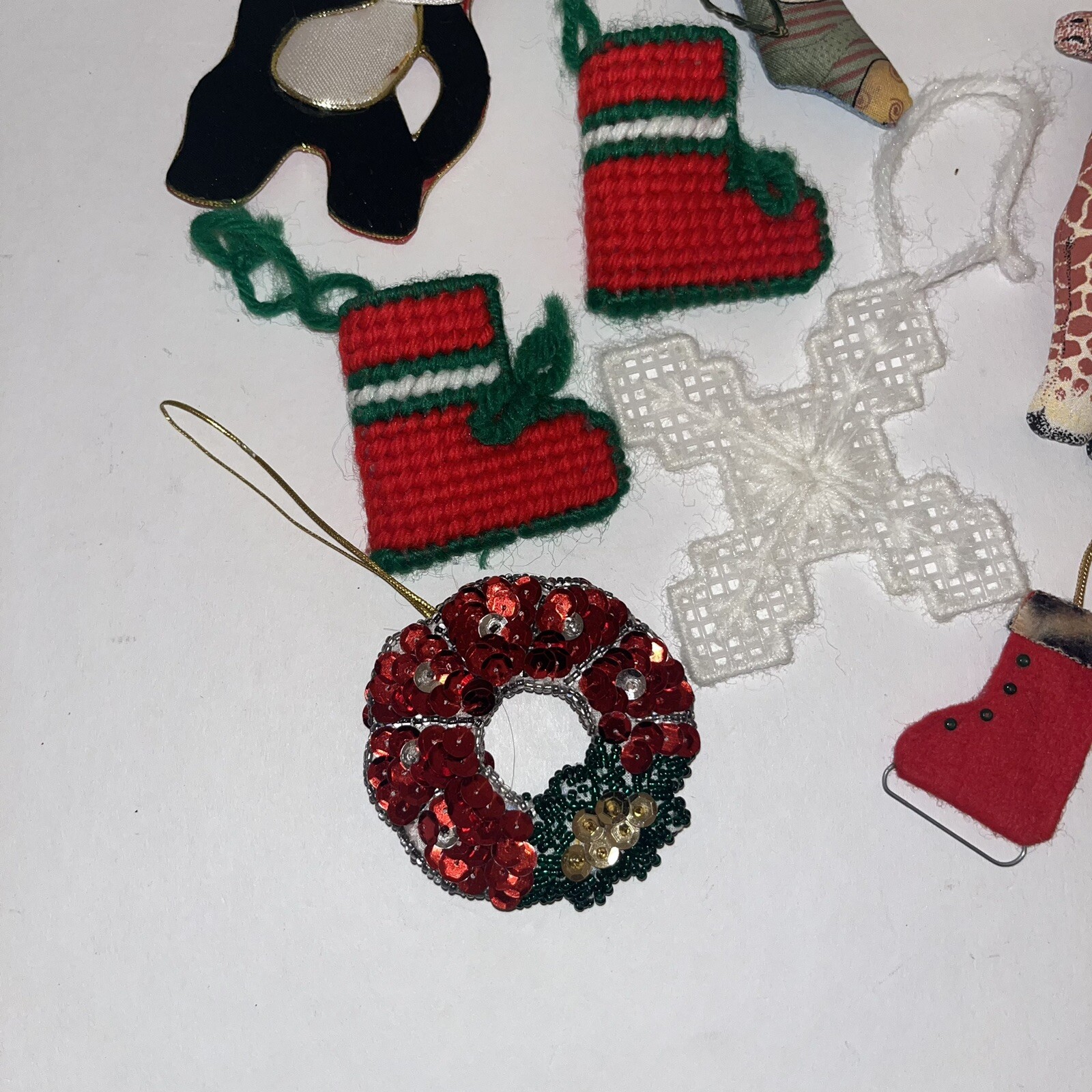 HomeVintage Handmade Christmas Ornaments Lot of 8 Cloth Yarn Sequin Decor