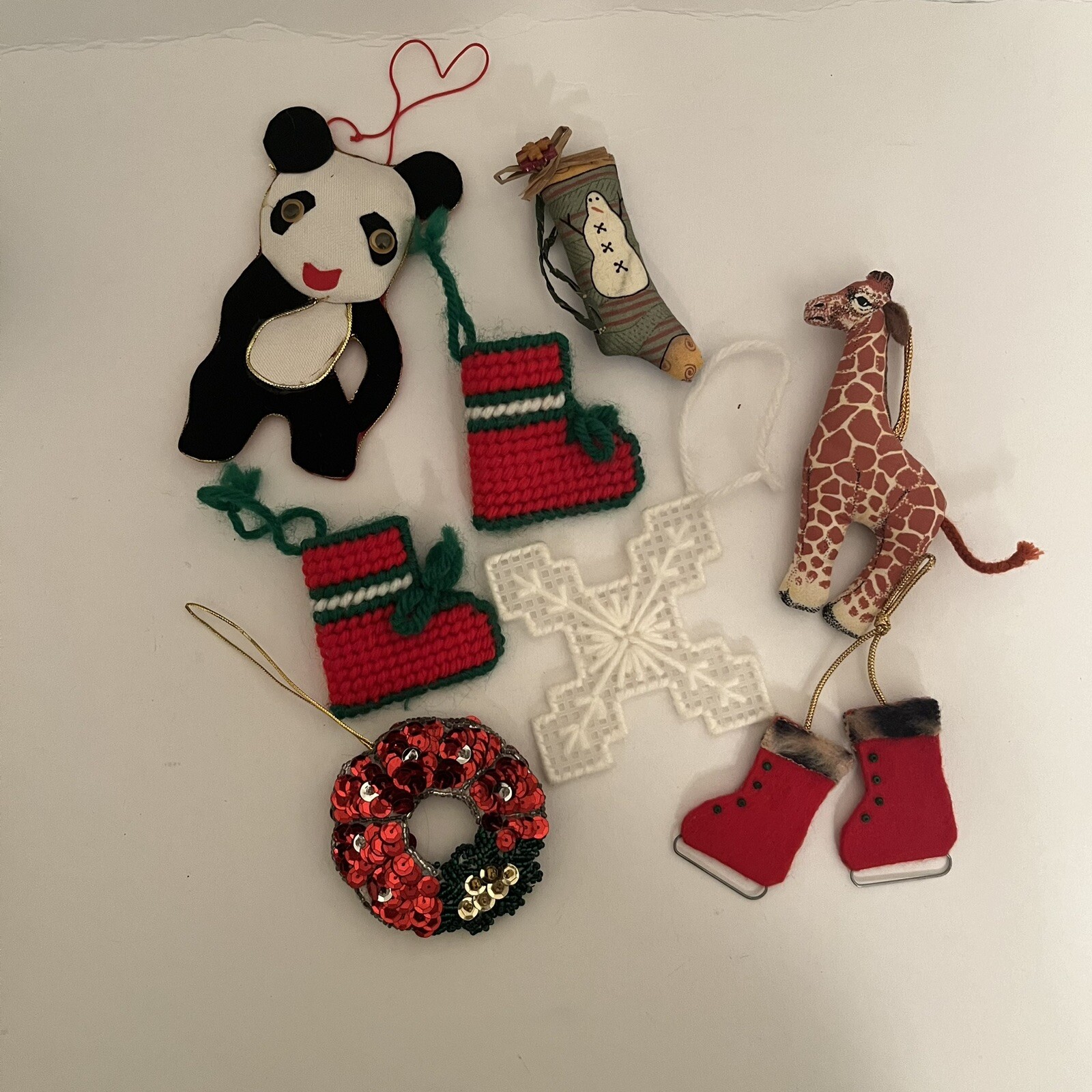 Vintage Handmade Christmas Ornaments Lot of 8 Cloth Yarn Sequin Decor