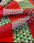 Beautiful quilted patchwork hand made tree skirt with traditional red green shades and holiday prints. Quilted with a batting between cotton. Appears completely unused and in pristine condition.