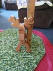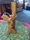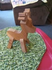 Add a touch of folk art to your Christmas decor with this vintage handmade wood reindeer figurine. Crafted with natural finish, this 3D effect figurine stands at 9 inches tall and 7 inches long, making it the perfect size for any medium-sized display. The brown color of the reindeer and the intricate detailing make it a unique addition to any animal-themed collection. This original piece is perfect for collectors and enthusiasts alike, with its handmade charm and late 20th-century era. Indoor and outdoor safe, this figurine is sure to bring a touch of whimsy to any space. Add it to your collection today!