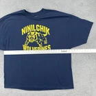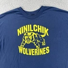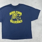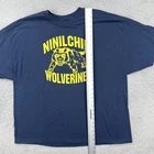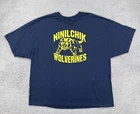 This is a vintage Hanes heavyweight cotton t-shirt in size 3XL, featuring a Wolverine character design. The t-shirt has a crew neck, short sleeves, and a solid blue color. It is a knit fabric type with a regular fit, ideal for all seasons. The shirt has a retro 90s sports theme and is easy to care for. No holes or stains See pictures for pictured measurements compare with your favorite garment and ask questions if you have any Add to your collection today Browse my other items I can combine shipping