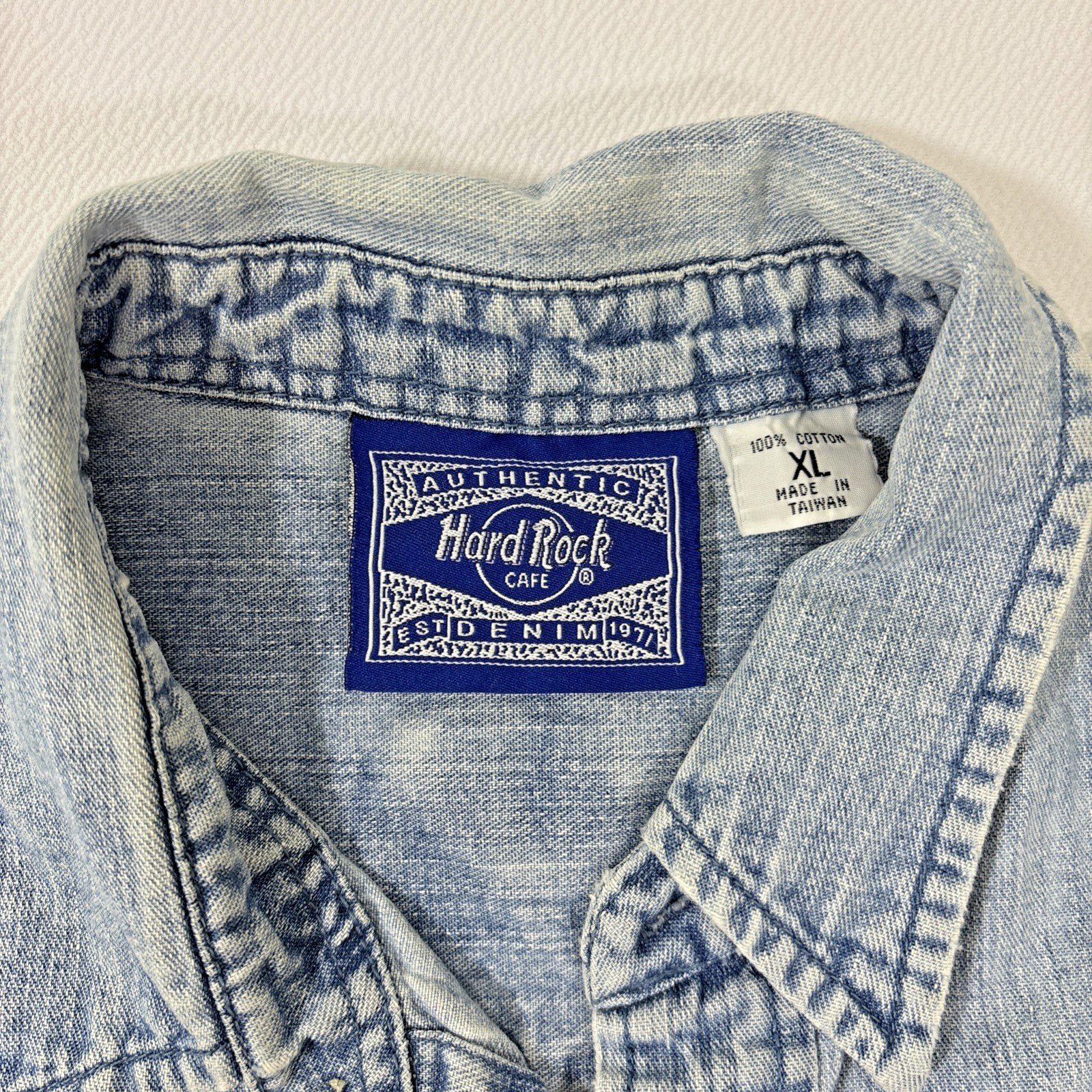 Vintage Hard Rock Cafe New York Denim Button-Up Shirt Men’s XL – Classic Embroidered Logo & Casual Style! Show off your love for iconic style with this vintage Hard Rock Cafe New York denim shirt. Crafted from durable cotton denim and featuring beautifully embroidered front and back logos, this shirt embodies the timeless Hard Rock spirit. Perfect for casual wear, collectors, or fans of classic Americana fashion. Item Details: Brand: Hard Rock Cafe Location: New York Size: Men’s XL Color: Blue Denim Style: Long Sleeve Button-Up Shirt Material: 100% Cotton Denim Gender: Men’s Key Features: Iconic Hard Rock Cafe “New York” embroidered logo Button front closure and cuffs Soft, durable medium-wash denim Classic relaxed fit for comfort and style Perfect for collectors, travelers, or vintage fashion fans Condition: Pre-owned – Excellent condition with no major flaws, stains, or tears. Clean and ready to wear! 📦 Fast shipping ✅ Trusted seller 📸 Actual photos of the item shown Item Specifics: Brand: Hard Rock Cafe Size: Men’s XL Color: Blue Denim Style: Button-Up Long Sleeve Material: 100% Cotton Features: Embroidered Logo, Button Front, Collared Fit: Regular / Relaxed Condition: Pre-owned – Excellent Gender: Men’s