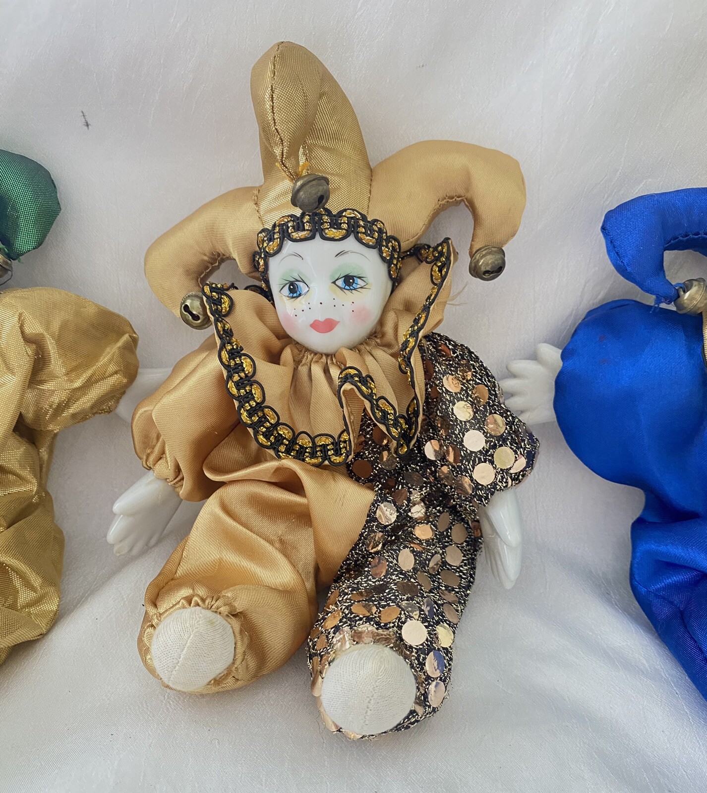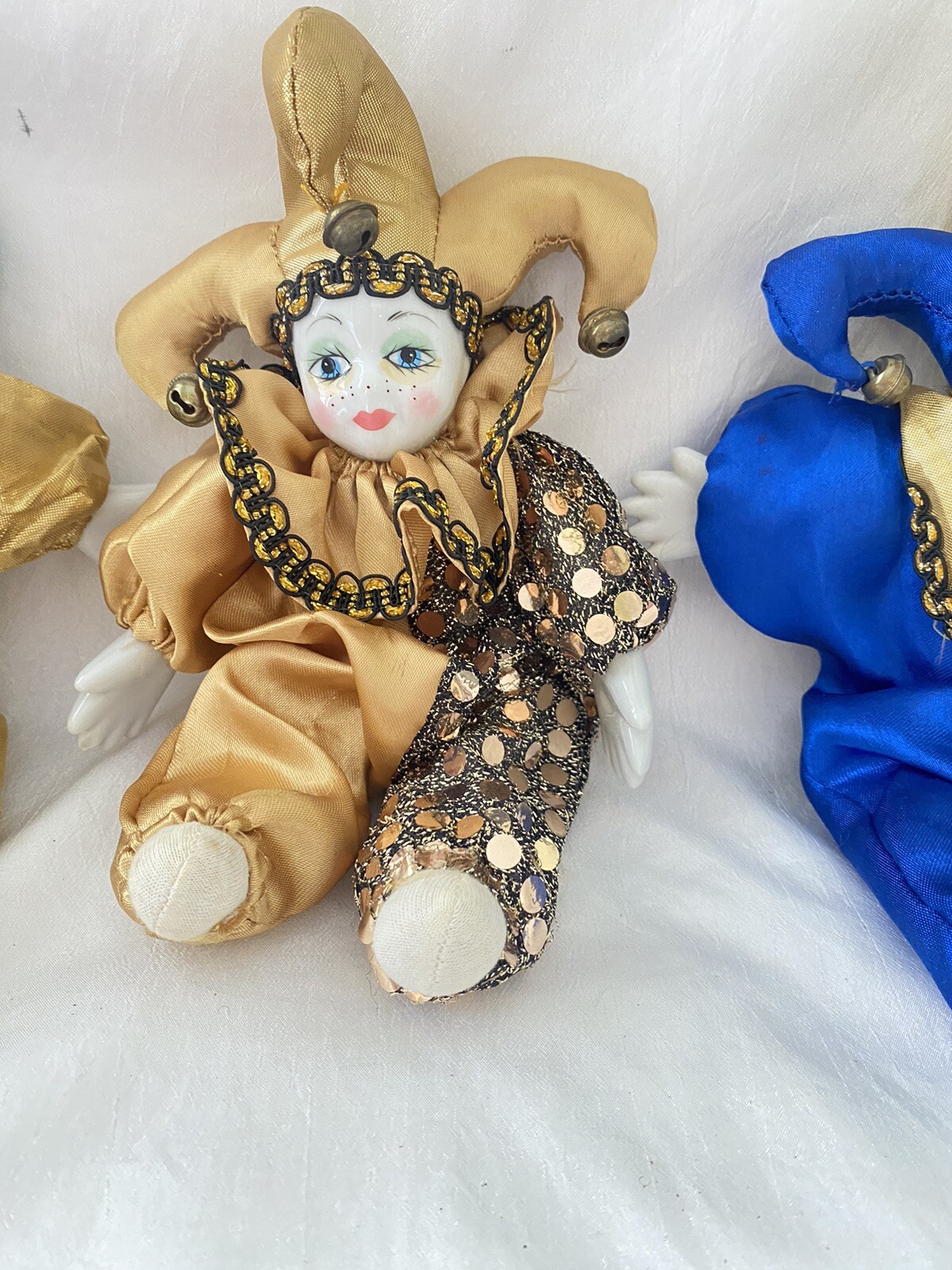 Description: Vintage Harlequin MARDI GRAS Doll Porcelain Art Clown 3 Pieces Collectible Bendable. Measures 9" Tall C 8" Wide (expanded). Shipping: Fast shipping ! I will ship your items to you the same day I receive your payment whenever possible. When payments are made after 2 p.m. Monday thru Friday or on weekends and Holidays I will ship your item the next business day. Packing, time, gas supplies, and fees are included, so if shipping is high, please pass on my items, thank you. I am always willing to combine shipping costs when more than one item is purchased, so check out the other items that I have listed!