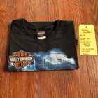 This vintage Harley-Davidson motorcycles t-shirt in size XL features a striking graphic print of flames and fire, capturing a biker aesthetic reminiscent of the 90s era. Made from 100% cotton pre-shrunk material, this black t-shirt with a crew neck and short sleeves offers a regular fit, suitable for all seasons. Emblazoned with the iconic Harley-Davidson branding, this piece embodies a classic biker and motorcycle theme, perfect for those who appreciate a touch of retro style.