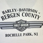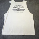 Vintage Harley-Davidson Shirt Mens 3XL White Tank Top Bergen County Rochelle Park NJ Condition: Good used condition. Light overall wear. Minor marks on the lower back as seen in the photos. Print shows moderate cracking consistent with age. No holes or major flaws noted. Features a classic Harley-Davidson Trademark Motorcycles logo print on the front and Bergen County Rochelle Park, NJ dealership graphic on the back. Tag size: 3XL. 100% cotton, U.S. fabric, assembled in Mexico. Approximate measurements: Chest (pit to pit) about 28 inches, length from collar to hem about 30 inches. Copyright dates: 2004 (back), 2005 (front). Classic 2000s collectible dealer Harley tank top. Ideal addition for Harley fans, motorcycle enthusiasts, or vintage collectors looking for an oversized fit. Perfect for summer or layering!