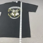 Vintage Harry Potter Hogwarts Shirt Mens Medium Black Condition: Good used condition - light fading from wash and wear, two small pinholes on lower front (see photos) Features large Hogwarts crest with 'Draco Dormiens Nunquam Titillandus' motto graphic on front Official Warner Bros Studio Store tag; released in 2000 Tag size Medium – see photos for flat measurements (approx. 27.5" length, 20.5" pit to pit) Material: 100% preshrunk cotton Single stitch sleeves and hems Back is solid black with no graphic Made in Mexico of U.S. components Authentic early 2000s Harry Potter memorabilia – perfect for collectors or fans of the Wizarding World