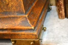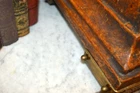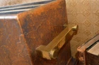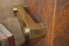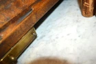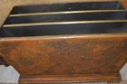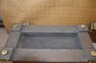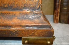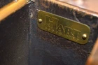 Vintage Hart Associates Large Magazine Holder Stand Leather and Brass In As found Vintage condition - missing 2 brass balls on corner trim - one small blemish on the leather - see photos Measures - 25 1/2" x 13"x 15" Weighs - 32 lbs.