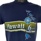 Vintage 1970s Hawaii No Ka Oe T Shirt Hawaiian Islands Blue Hi Cru By Stedman Single Stitch Made In USA Graphic Tee Condition: In gently used condition. No flaws noticed. Tag is a Medium but I feel it measures more similar to a modern X-Small. Check measurements to ensure fit. See photos. Size and Measurements: Mens/Unisex XS X-Small Extra Small Width 16.5" - Underarm to underarm Length 26.5" - Measure from top of shoulder, at the edge of collar, to the bottom of the shirt
