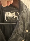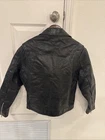 Item: Vintage Hawks Genuine Leather Motorcycle Jacket – Black Biker Asymmetrical Zip Details: • Brand: Hawks Genuine Leather (New York) • Color: Black • Material: 100% genuine leather • Features: • Classic biker/moto style • Asymmetrical front zipper • Snap-down lapels and shoulder epaulets • Multiple front zip pockets • Zippered cuffs • Belted waist • Lining: Black quilted lining • Era: Likely late 80s–90s Condition: Pre-owned vintage condition. Leather is supple with natural wear consistent with age. Zippers and snaps are functional. No major flaws noted (please review photos). 📏 Measurements (taken flat, in inches): • Chest (pit to pit): 16” (32” doubled) • Waist (across bottom hem): 15 ¾” (31 ½” doubled) • Shoulders (seam to seam): 16” • Sleeve length (shoulder seam to cuff): 22” • Back length (base of collar to hem): 23 ½” Notes: No size tag — based on measurements, fits like a Small / Extra Small (XS-S). Please compare to a jacket you own for best fit.