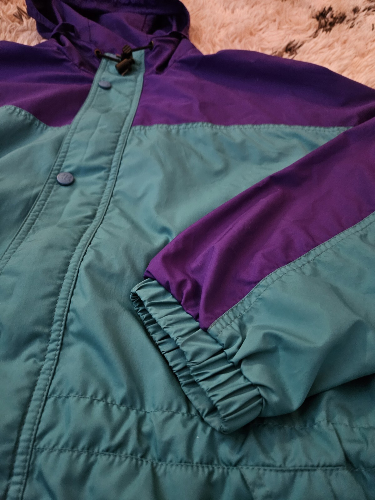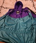 Vintage ladies size medium wind breaker jacket by Helly Hansen. Colors are teal and purple. This cute jacket features a zipper and snaps for closure. There are ties along each side for a more fitted or loose look. It comes with a hood as well. There are no stains, snags or holes. Comes from a smoke free home.