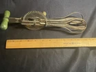 This vintage manual hand blender from A&J Manufacturing in the USA is a must-have for any collector or kitchen enthusiast. With its 11" steel blade and high-speed features, it can effortlessly blend anything from smoothies to soups. The blender's green wooden handles give it a classic look that will add charm to any kitchen. This blender is a perfect addition to your small kitchen appliances collection, and it is made with quality materials that will last for generations. The blender comes with two blades that are easy to clean and replace. Add this vintage piece to your kitchen today and enjoy the benefits of its unique design and high-speed blending capabilities. Nothing better for blending liquids. Go green , no electricity required