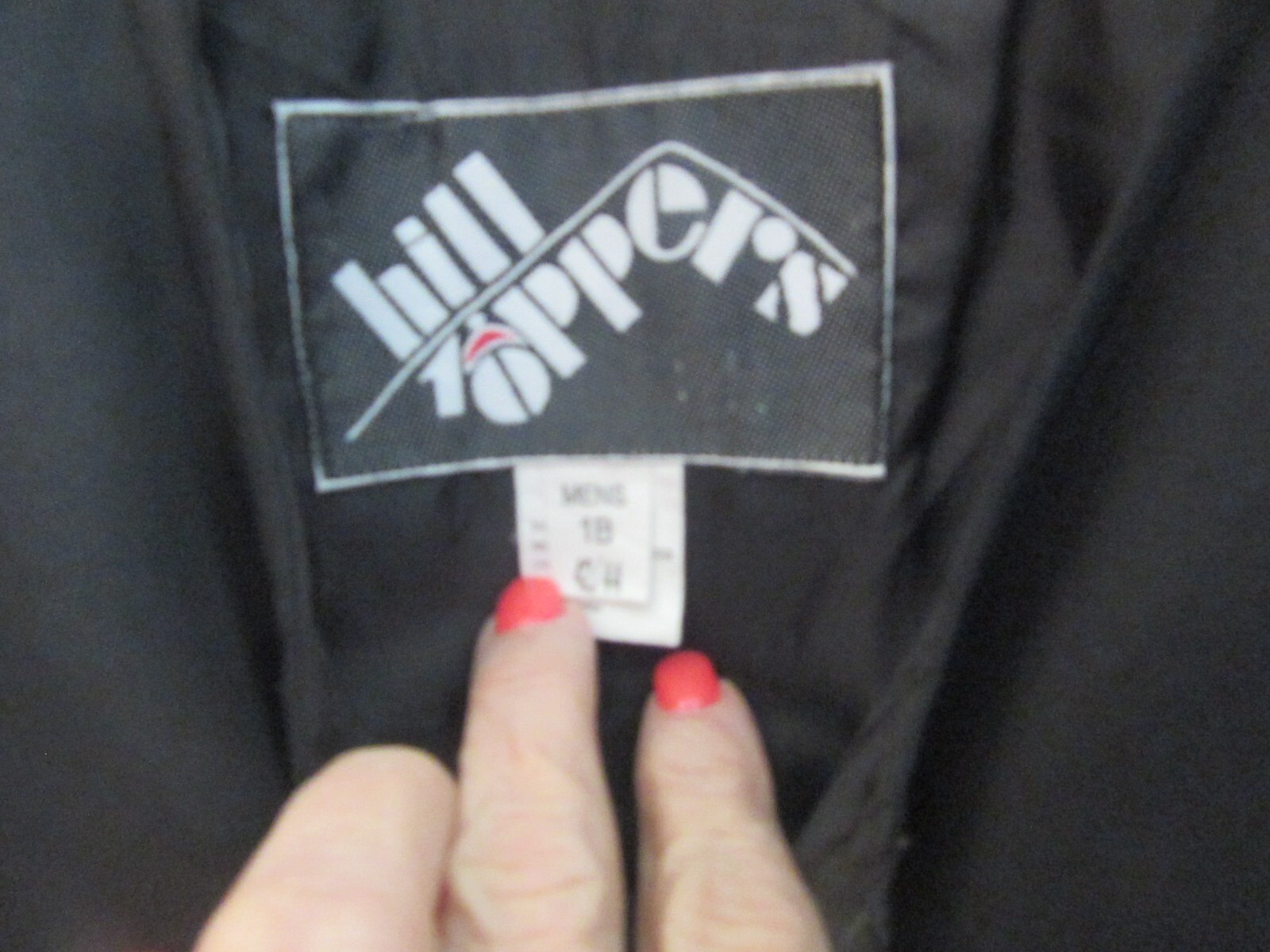 VINTAGE HILL TOPPERS BLACK MENS INSULATED SKI BIB OVERALLS SNOW PANT EXCELLENT CONDITION! MENS SIZE: 1 B 42/44 APPROXIMATE MEASUREMENTS LYING FLAT: 20" PIT TO PIT~22" WAIST~29" INSEAM~10" (OUTER PANT HEM WIDTH)~16" RISE (CROTCH TO LOWEST PART OF FRONT BIB0 BLACK WATER REPELLANT NYLON OVERALL BIB STYLE~CLIP AND ZIPPER CLOSURE~ELASTIC INSERTS ON SIDES OF WAISTBAND~BACK ZIP POCKET~ELASTIC GAITERS~SHELL: 100% NYLON~LINING: 100% POLYESTER COMES FROM A SMOKE FREE / PET FREE HOME THANKS FOR LOOKING! SHIPPING: USPS MAIL