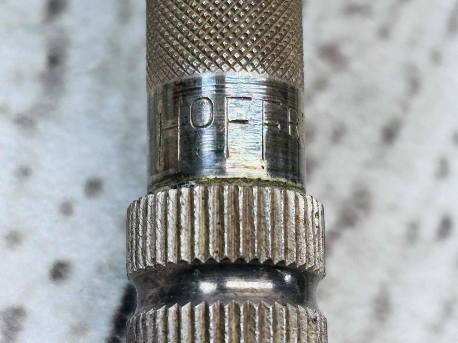 Vintage Hoffritz Germany Slant Bar Safety Razor w/ Metal Case & Blades Classic vintage Hoffritz slant bar double-edge safety razor made in Germany, housed in its original monogrammed metal travel case. Includes one installed Wilkinson Sword blade plus an additional Wilkinson Sword Chromium Edge blade pack. The razor disassembles easily and functions properly—threads turn smoothly, and the mechanism operates as intended. •Brand: Hoffritz Germany •Type: Slant Bar Double-Edge Safety Razor •Material: Chrome-plated metal •Included: Original metal case (engraved “Tom Molinare”), Wilkinson Sword blades •Condition: Razor shows normal surface wear and light tarnish consistent with age but remains in good overall condition. The case has visible exterior wear and oxidation; interior velvet lining shows fading. With some gentle polishing, both the razor and case could present beautifully. •Ships securely Please zoom in on all photos to review condition and details before purchasing. The razor is fully functional and displays well as both a collectible and usable piece of classic shaving history.