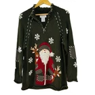 Vintage Holiday Santa Reindeer Snowflake Christmas Sweater Half zip Ramie cotton blend 21” pit to pit 29” length Excellent condition From pet & smoke free environment