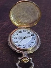 This vintage pocket watch with a hunter case features a quartz internal movement, making it a unique and stylish accessory for unisex adults. Made in Hong Kong, this non-working pocket watch is a charming and nostalgic piece that can add a touch of vintage flair to any outfit. The intricate design and craftsmanship of this watch make it a valuable collector's item for watch enthusiasts and vintage lovers alike.