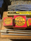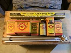 Items include: 1 aluminum shotgun cleaning rod with out box, 1 Outers brand maple shotgun cleaning rod with box, 2 boxes of .22-.270 cleaning patches, 1 box .270-.35 cleaning patches, 1 box 12-16 gauge shotgun cleaning patches and 2- 3/4 full bottles of Hoppes solvent. Patch boxes all have patches in them but we're not counted. Boxes all have some minor damage but the Hoppes solvent box is the worst of the lot. Please see pictures for condition. Thanks for looking.