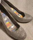 Excellent shape with only minimal signs of wear. Add some sparkle to your step with these stunning gold pumps from Hot Tomato. The jeweled pattern and sequins will catch the light and turn heads at any occasion. Slip them on with ease thanks to the slip-on closure, and enjoy the comfort of the synthetic upper and insole material. These heels are perfect for adding some glamour to your travel, wedding, party, cocktail, formal, or business outfit. The 3.5-inch stiletto heel adds height and elongates your legs, while the reflective features make sure you shine wherever you go. These pumps are suitable for fall and winter seasons, and their metal theme will add some edge to your wardrobe.