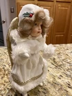 This Vintage House of Hatten Christmas Angel Doll Ornament, designed by Judie Tasch, is a delightful addition to any collection. Made of mixed materials, this antique ornament features an angel shape and is perfect for Christmas occasions. The ornament is a part of the Ornaments collection and is branded by House of Hatten. The ornament is perfect for those who love angels and vintage items. It has features that make it stand out, and it is a great addition to any holiday decoration collection. Get your hands on this beautiful ornament today and add some vintage charm to your Christmas decor. 9.5 inches. Can stand or hang.