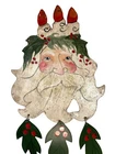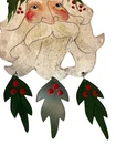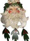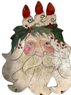 House of Hatten large Santa Claus face with metal holly leaves. Hand painted Christmas ornament. Made in 1991. Vintage. From the Enchanted Forest collection. Approximately 9” long. In great preowned condition. Originally created with an antique, old world look, lightly distressed look.