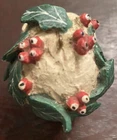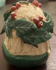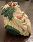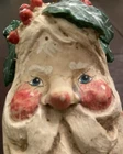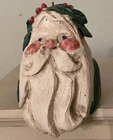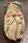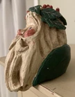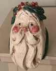 Add a touch of vintage charm to your holiday decor with this House Of Hatten Santa Head Ornament/Shelf Sitter. Made in the United States in 1988, this ornament is a great find for collectors. The ornament features a Santa face that has beautiful blue eyes, a 3d green wreath of holly with red berries on his head, and rosy checks and nose. His sculpted beard and mustache is great. This Santa has an old charm feel to it and adds a festive touch to any room. Perfect for Christmas, this ornament or shelf sitter is a must-have for those who love unique holiday decor. The Santa head is 3-1/2” deep front to back, 3” across side to side and 3-1/2” tall.