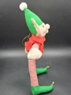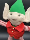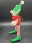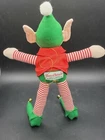 Vintage House of Hatten Large Elf Plush. Doll in very good pre-owned condition, clean, no odors. It stands 11 inches tall with big elf ears and dressed in holiday best. There is a gold strand for hanging, I would think it would be an oversized ornament but could be hung anywhere or simply stand on its own. Only noted issue is the one bell on foot is slightly looser than the other. Any questions please ask! Great vintage Christmas! Will be packed in bubble wrap for shipping to protect the doll in the event your box is delivered while raining.