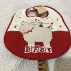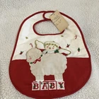 This vintage Christmas Bib from House of Hatten features an adorable Christmas Baby Sheep and Angel Bear insert character that squeaks in a red, green, and white color scheme. The Bib is made of a cotton blend material and measures 14 inches in length, with a diagonal size of 18 inches. It is embellished with applique and metallic gold thread details, adding a touch of elegance to the festive design. The Bib is perfect for Christmas Holiday and makes a great addition to any collection of holiday decorations. It is a medium-sized stocking and comes with a bib shape, making it easy to hang and display. This collectible item is a must-have for any angel or Christmas Baby franchise enthusiast. Vintage 1985 House of Hatten Applique Christmas Bib BABY Sheep and Angel Bear Insert that Squeks14”. New With Tags. Payment per eBay guidelines. Shipped 1 business day after receipt of payment. Will ship to international customers at the buyers expense. Good Luck.