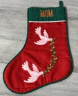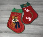 Vintage House of Hatten Applique Christmas Stockings Mom and Dad Gorgeous Set of 2. There are no rips or tears but there is some bleeding/ staining which happened when washed. Please see photos. 14.75" Long 9.5" Wide at Bottom 6.5" Wide at Top