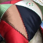 Vintage House Of Hatten Santa Throw Pillow Crazy Patchwork Quilt. Beautiful vintage patchwork quilt Santa throw pillow from House of Hatten. It is in very good condition with no stains, tears or rips. There are some fuzzies on the surface, I believe from the filling. The pillow measures 24 inches tall.